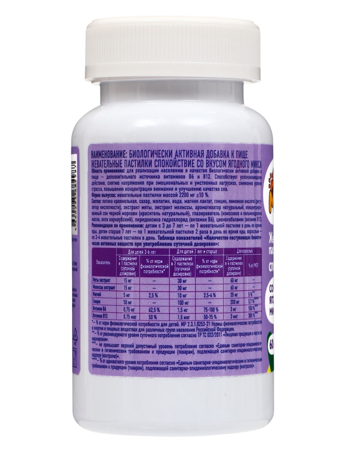 Жевательные пастилки «Спокойствие», для детей, со вкусом ягодного микса, 60 шт.