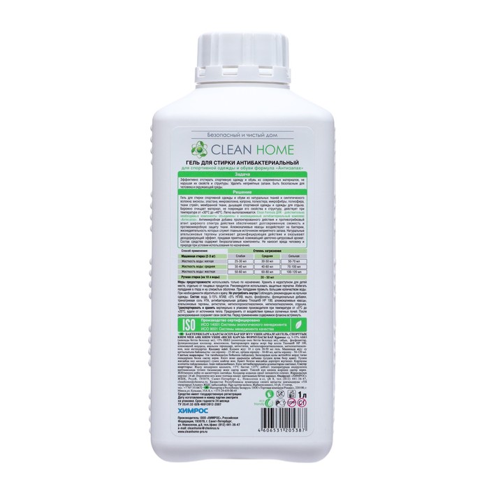 Жидкое средство для стирки Clean home «Антизапах», гель, для спортивных тканей и обуви, 1 л