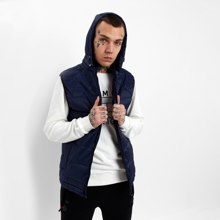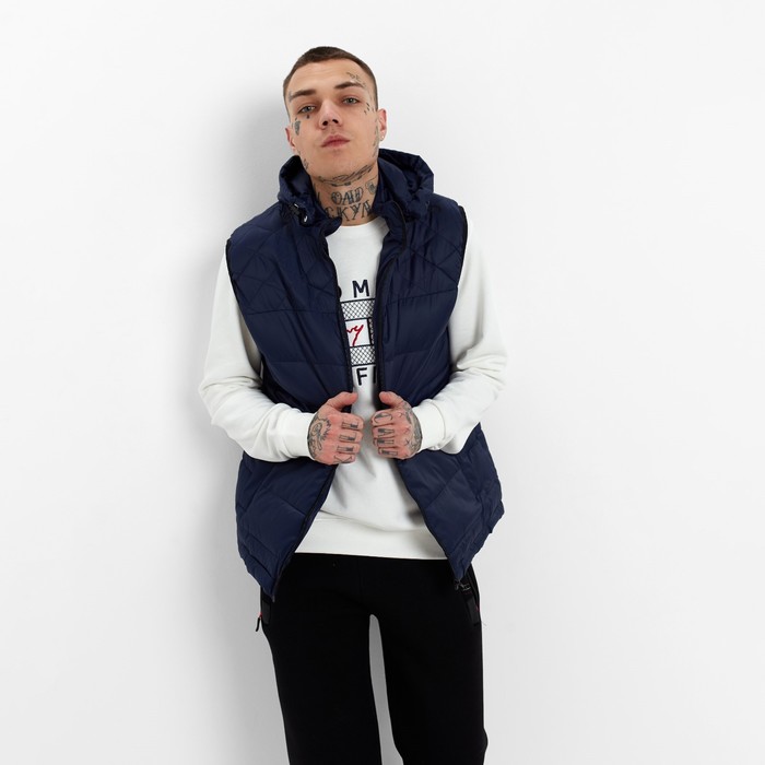 Жилет утепленный мужской, цвет тёмно-синий, размер 52