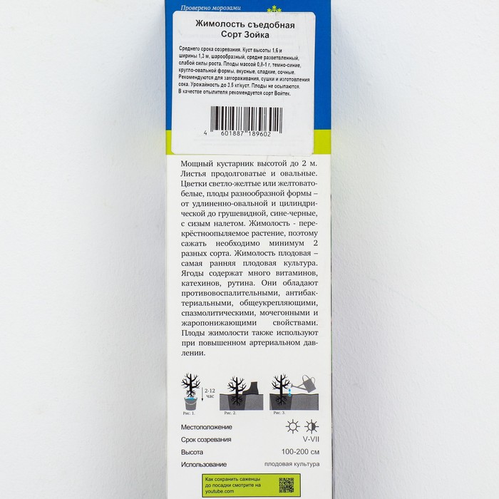 Технические характеристики Жимолость съедобная (Серия Северный Сад) "Зойка", 1 шт, туба, Весна 2026