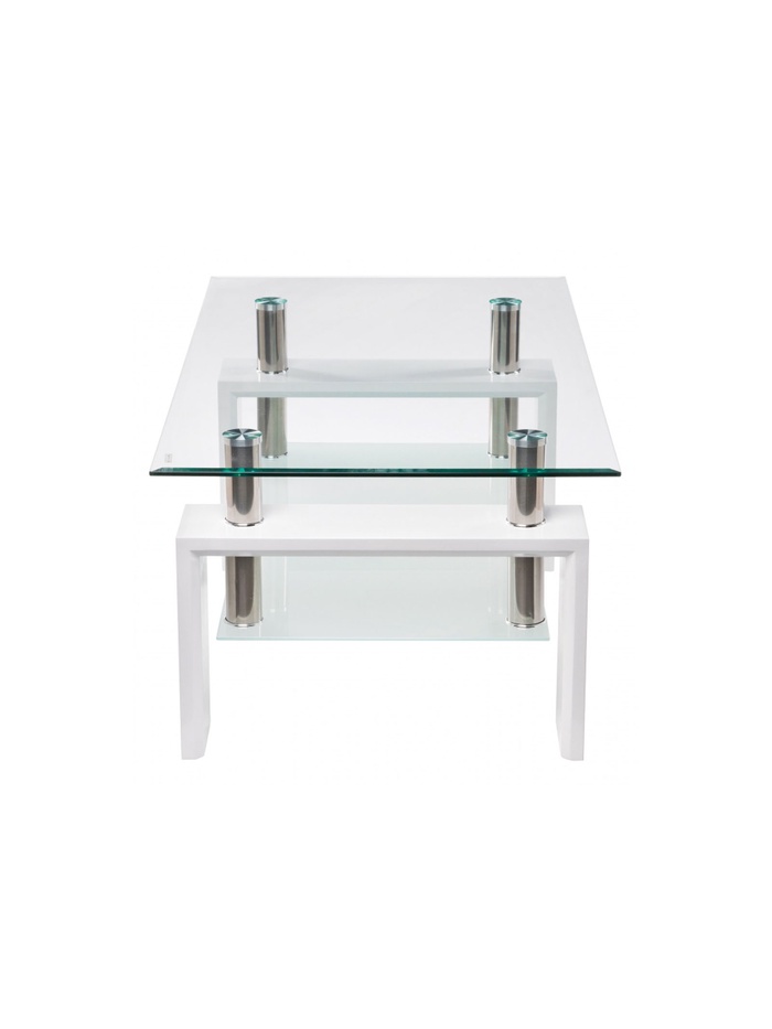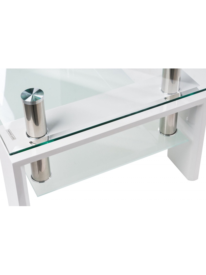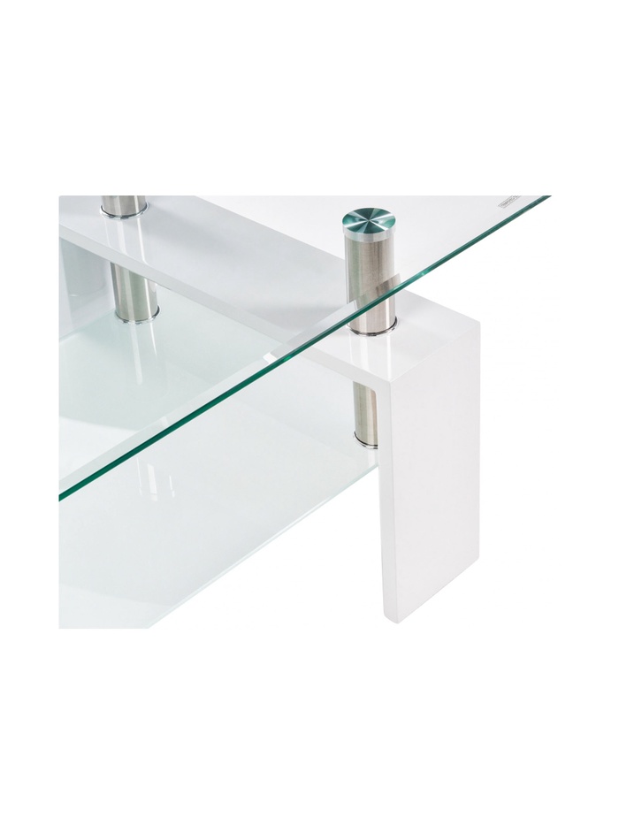 Современный и элегантный журнальный столик CT1-052 white идеально дополнит интерьер любой гостиной. Прочные металлические ножки обеспечивают устойчивость конструкции, а верхняя и нижняя стеклянные полки толщиной 6 мм добавляют легкость и стиль.