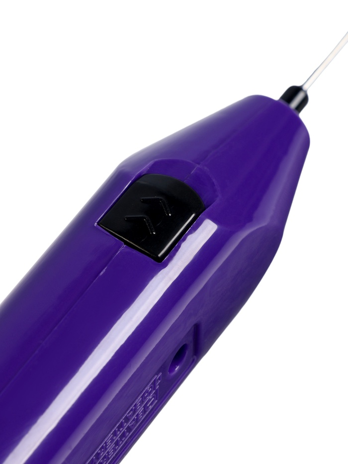 Погружной капучинатор в фиолетовом пластике позволяет быстро взбивать молоко и сливки для кофе, латте или капучино. Компактный и лёгкий, он удобно лежит в руке и работает от двух батареек типа AA, обеспечивая полную свободу использования без проводов.