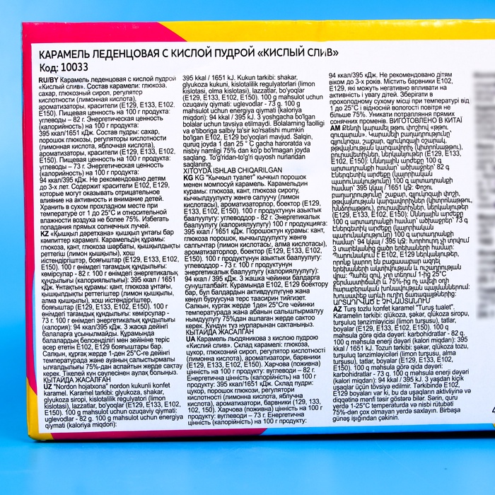Технические характеристики Карамель леденцовая с кислой пудрой «Кислый слив» НАБОР, 24 шт, 192 г