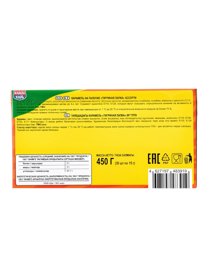 Карамель на палочке "Тигриная лапка" ассорти 15гр