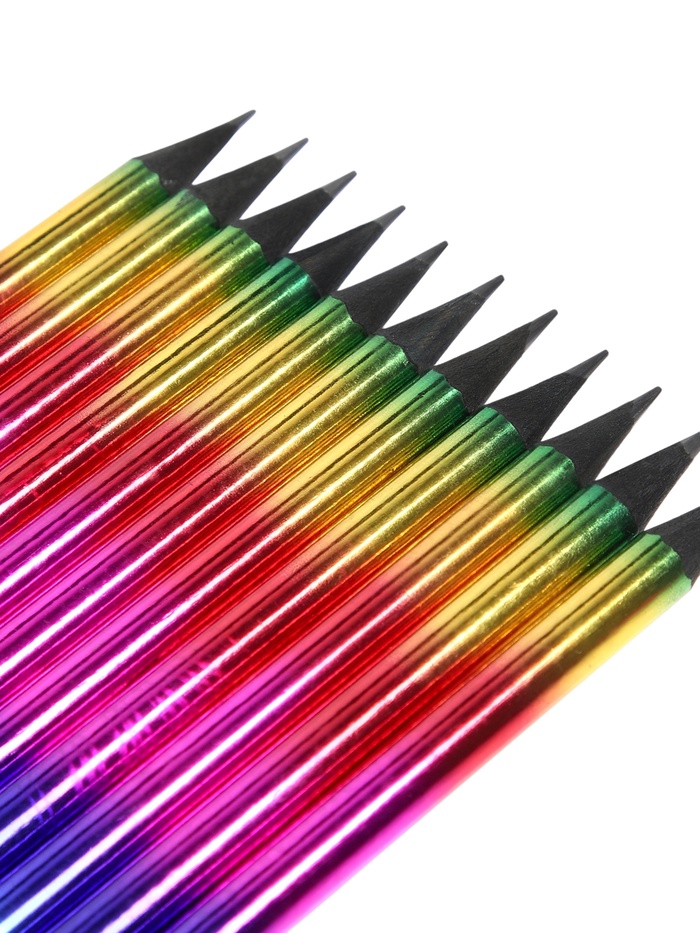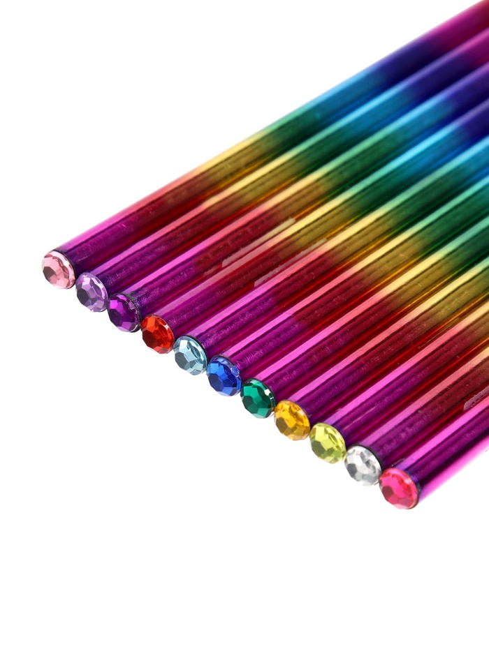 Карандаш чернографитный, НВ, заточенный, корпус радуга, голография, со стразой