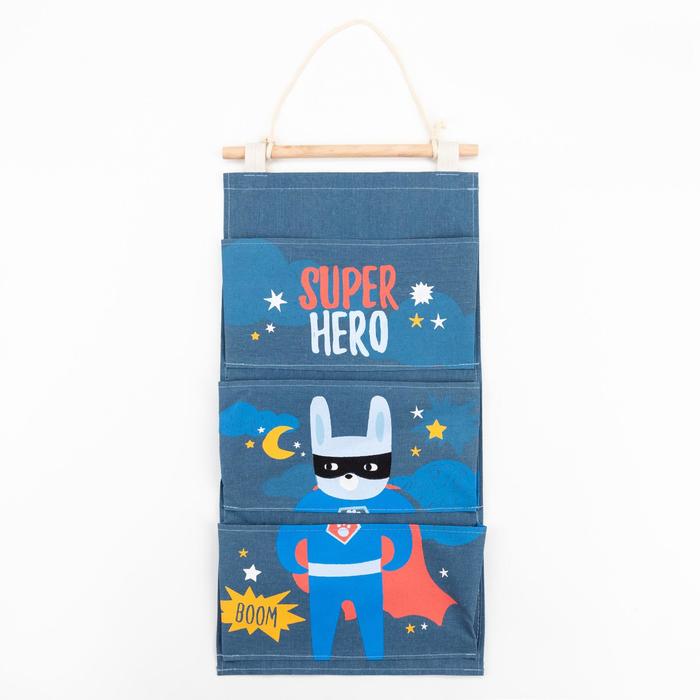 Кармашек текстильный Этель "Super hero", 3 отделения, 26х50 см, водонепроницаемый