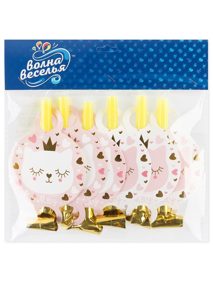 Карнавальные язычки гудки "Котенок Принцесса" 11 см, 6 шт. в упак.