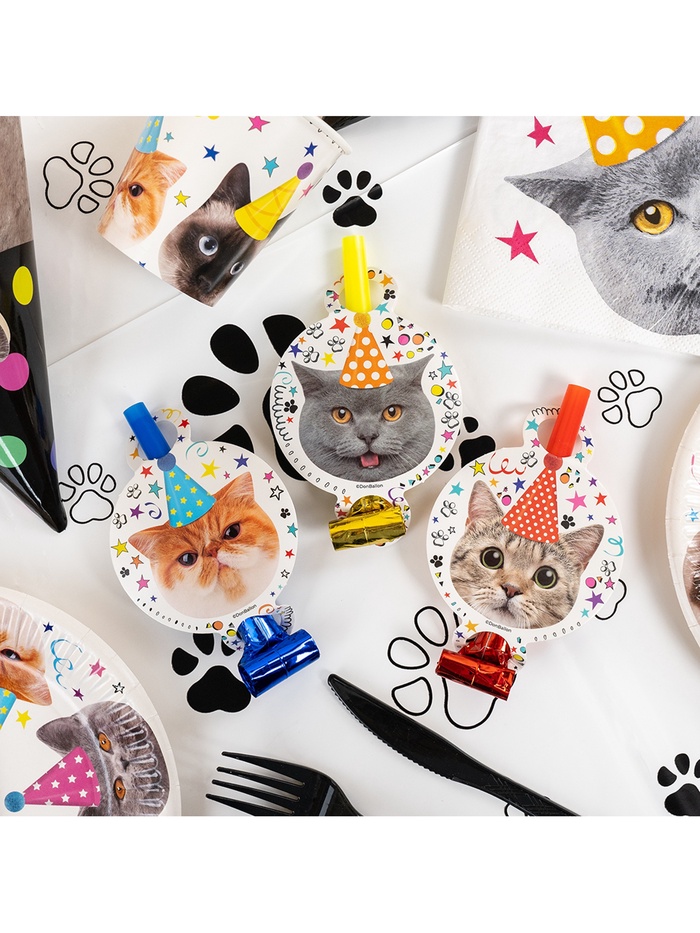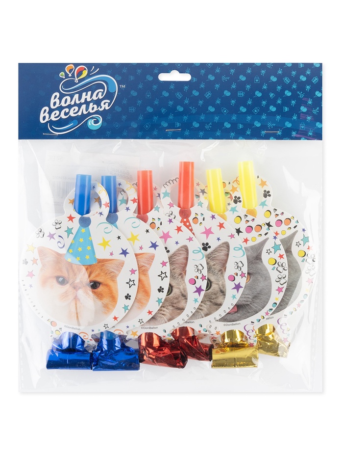 Карнавальные язычки гудки "Котики" 11 см, 6 шт. в упак.