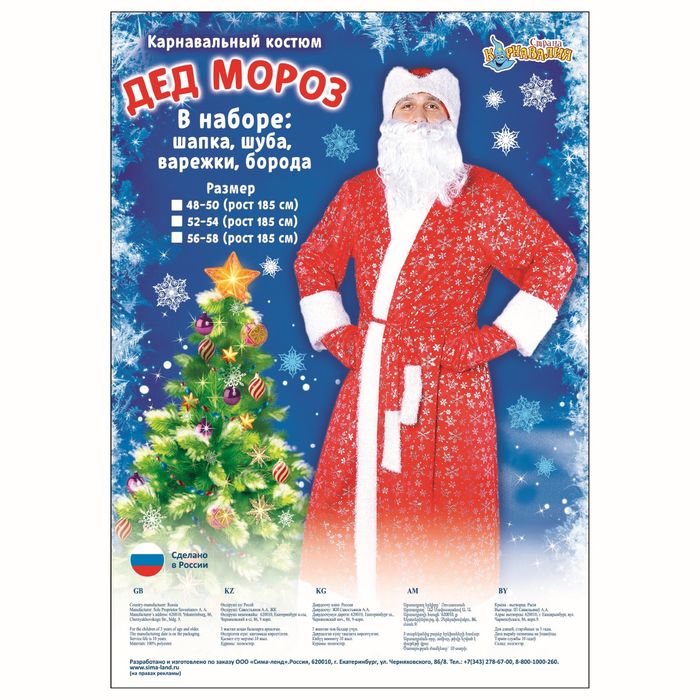 Чтобы превратиться в самого популярного зимнего героя, выбирайте карнавальный костюм "Дедушка Мороз", кудрявый мех, р-р 56-58, рост 185 см! В лёгкой яркой шубке со снежинками и с белоснежной бородой вы в любом доме будете приняты с распростёртыми объятиями и станете звездой вечера! Этот образ востребован на корпоративных вечеринках, театрализованных представлениях и детских утренниках.