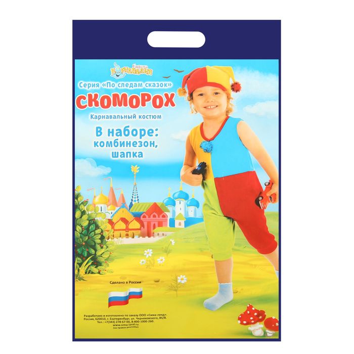 Технические характеристики Карнавальный костюм от 1,5-3-х лет "Скоморох", велюр, комбинезон, шапка