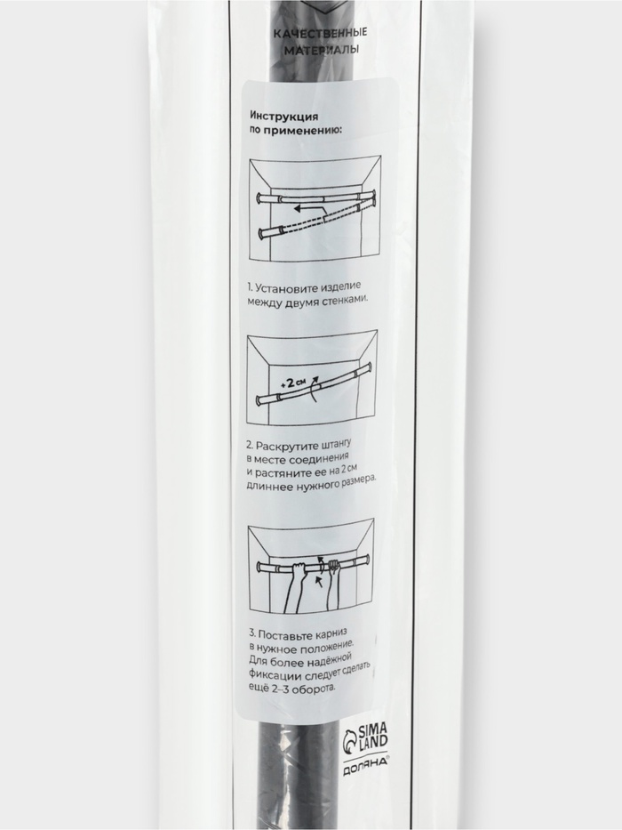 Крепление осуществляется за счёт распорной системы, не требующей инструментов и повреждения стен.