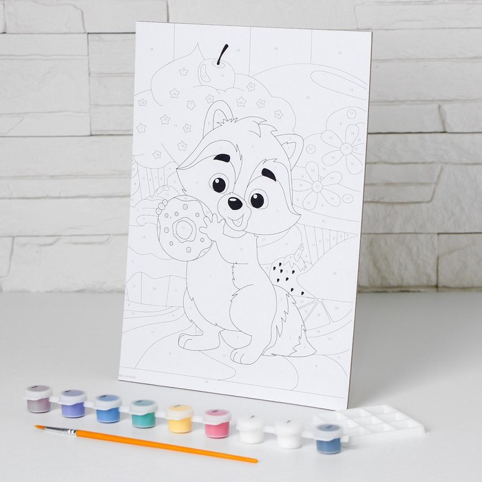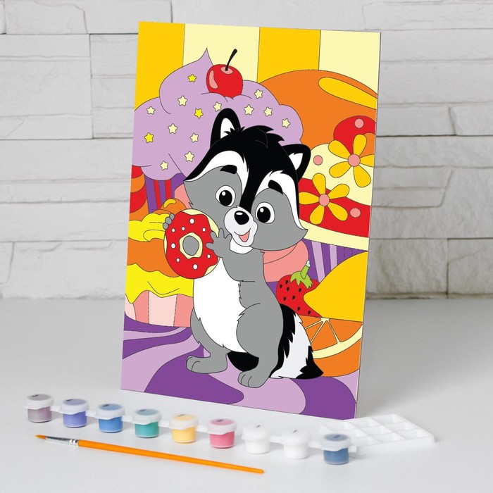 Картина по номерам для детей «Енот-сладкоежка», 20×28.5 см