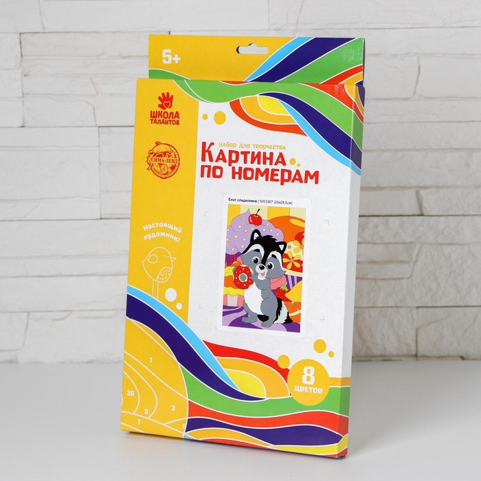 Технические характеристики Картина по номерам для детей «Енот-сладкоежка», 20×28.5 см