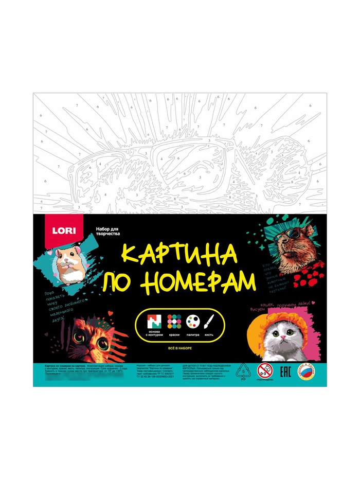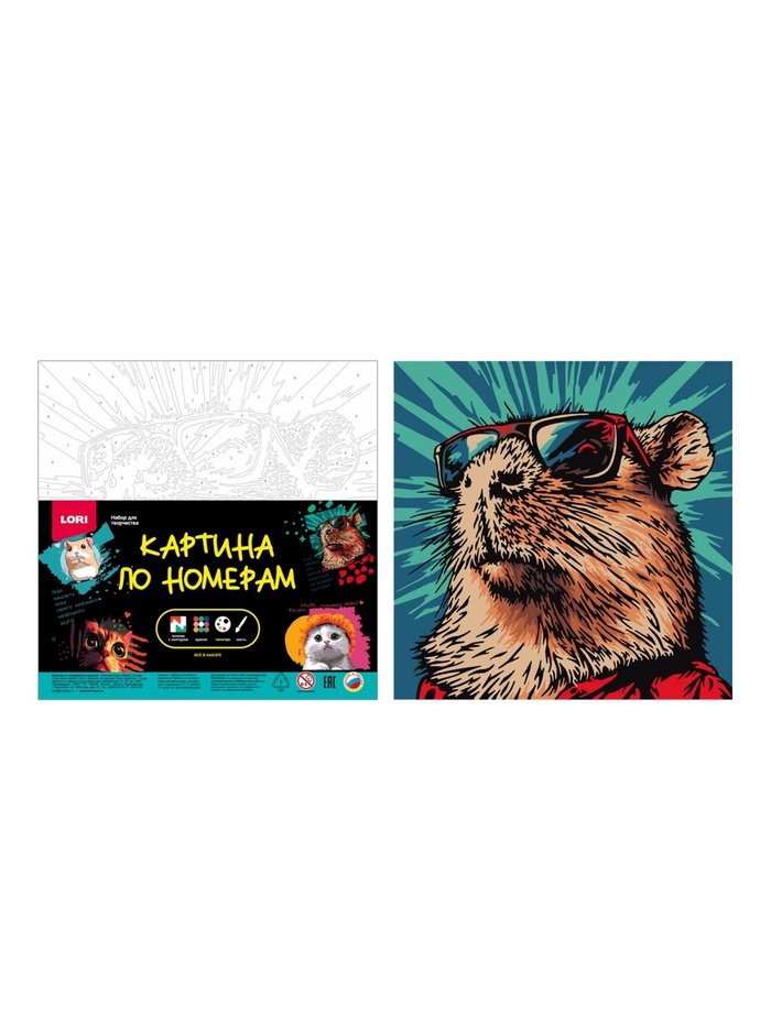 Технические характеристики Картина по номерам для малышей на картоне 20х20 "Крутая капибара" Ркн-144