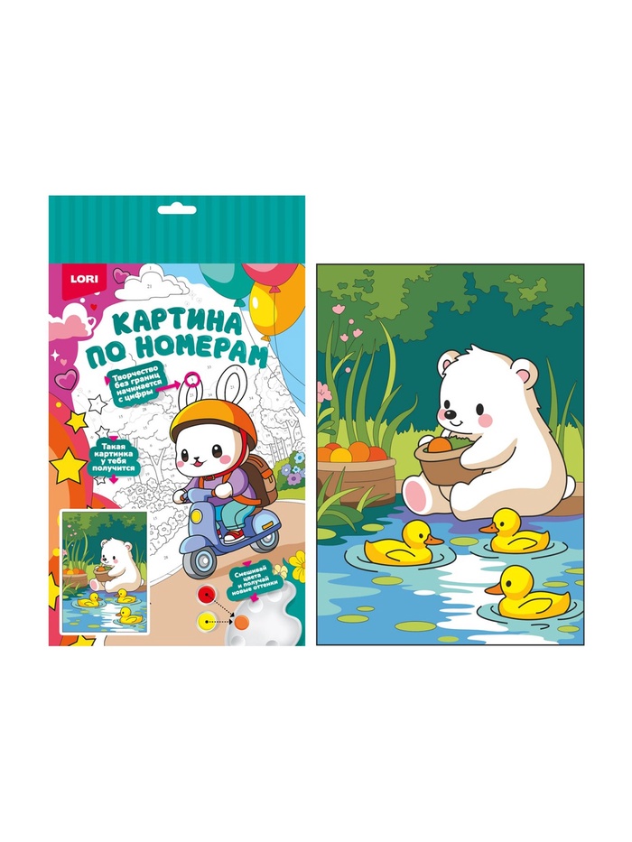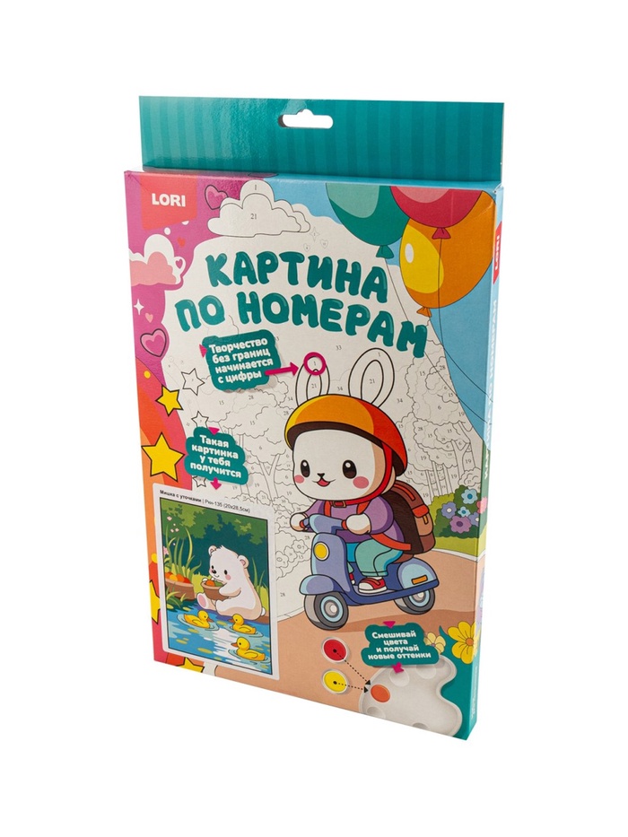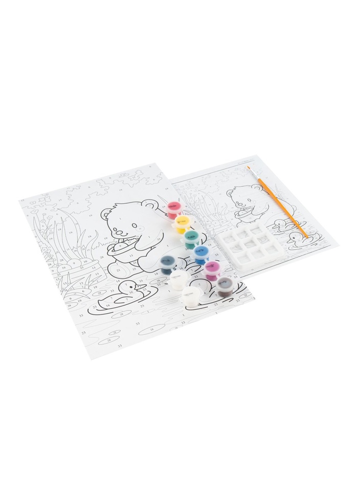 Технические характеристики Картина по номерам для малышей на картоне 20х30 "Мишка с уточками" Ркн-135
