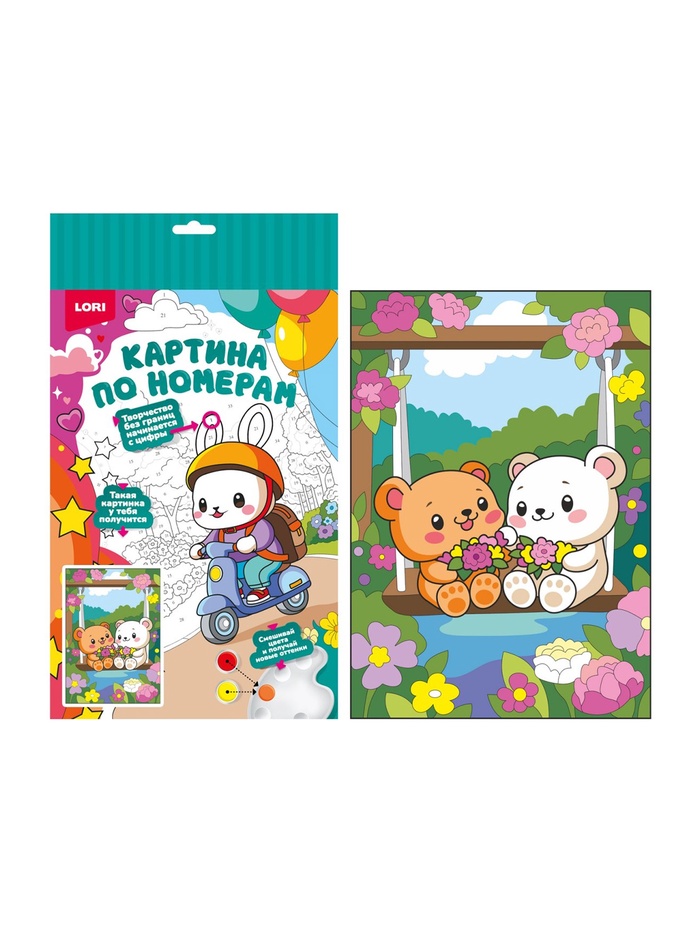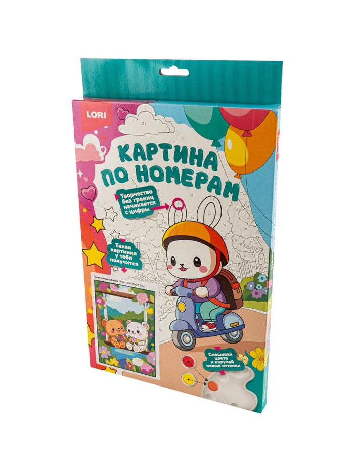 Технические характеристики Картина по номерам для малышей на картоне 20х30 "Цветочные качели" Ркн-136