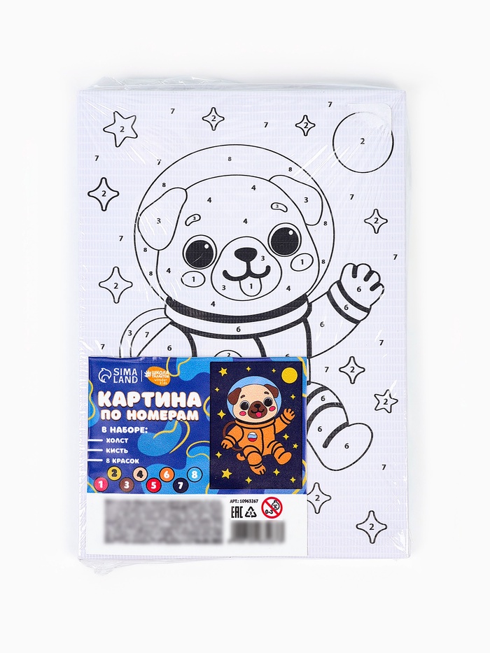 Технические характеристики Картина по номерам «Мопс в скафандре», 21×15 см