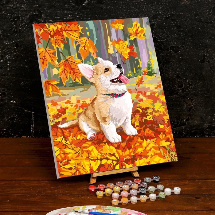 Картина по номерам на холсте с подрамником "Корги в осенней листве" 40*50 см