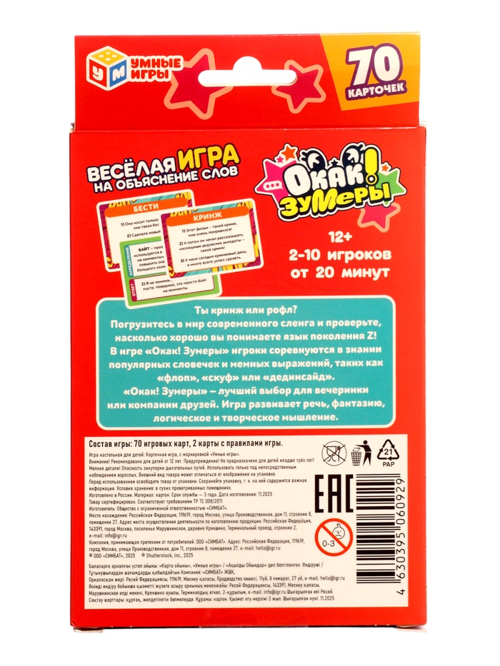 Технические характеристики Карточная игра "Окак! Зумеры" 4630395060929