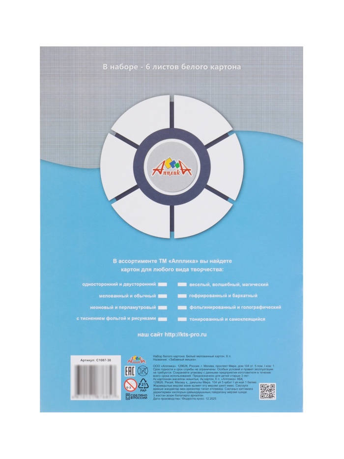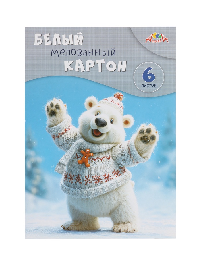 Картон белый А4, 6л "Забавный мишка", мелов
