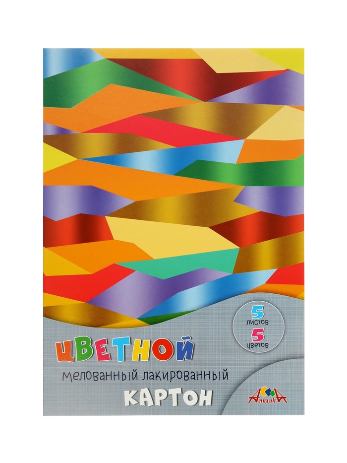 Картон цветной «Абстракция» А4, 5 листов, 5 цветов, 200 г/м² , 1-сторонняя, лакированный, мелованный, в папке