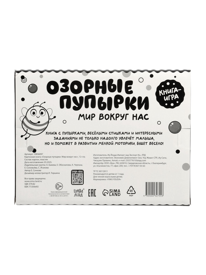 - Выдерживает активное использование. Плотный картон и надёжные пупырки созданы для маленьких, но энергичных рук.