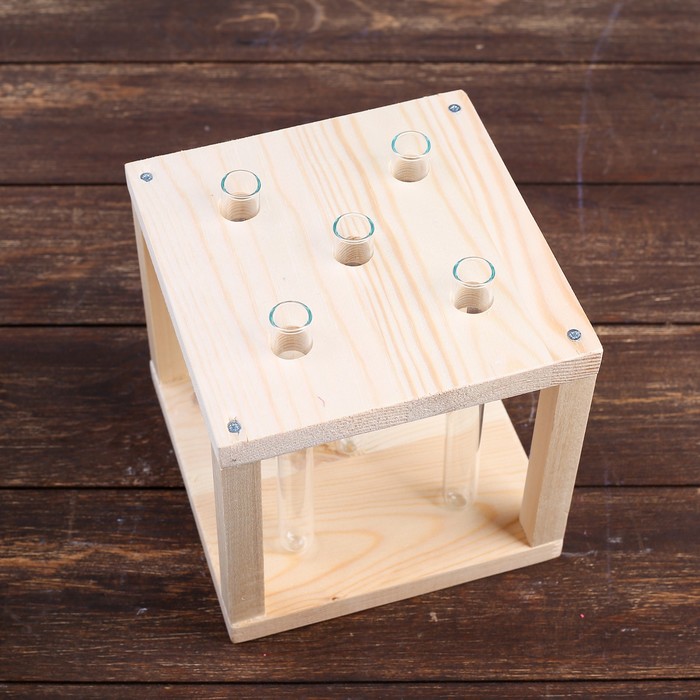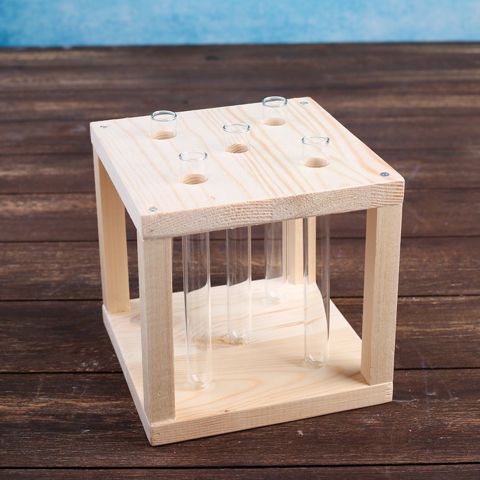 Кашпо деревянное 15.5×15.5×16.5 см с 5 колбами "Квадрат", натуральный
