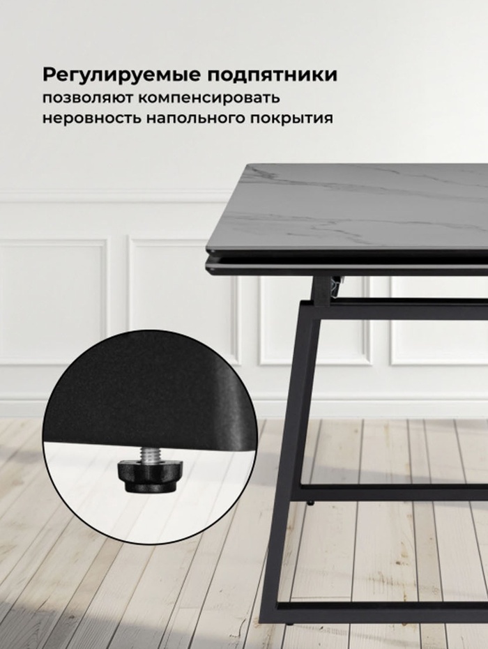 Технические характеристики Стол кухонный керамический раздвижной «Джек», 1400(2000)×800×750 мм, цвет серый мрамор / черный