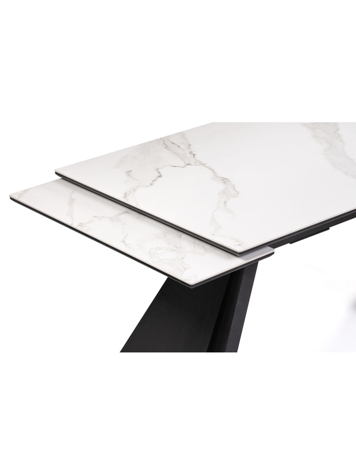 Стол кухонный керамический раздвижной «Ливи», 1400(2000)×800×780 мм, цвет белый мрамор / черный