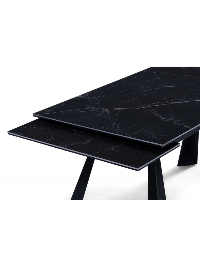 Стол кухонный керамический раздвижной «Маунт», 1400(2000)×800×770 мм, цвет черный мрамор / черный