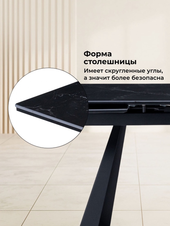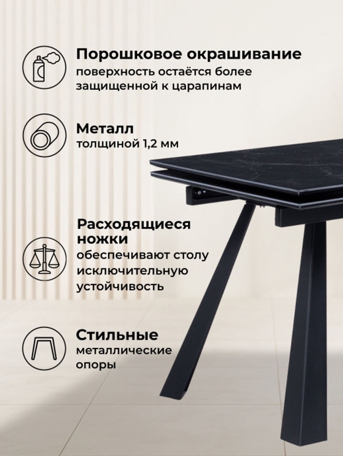 Технические характеристики Стол кухонный керамический раздвижной «Маунт», 1400(2000)×800×770 мм, цвет черный мрамор / черный