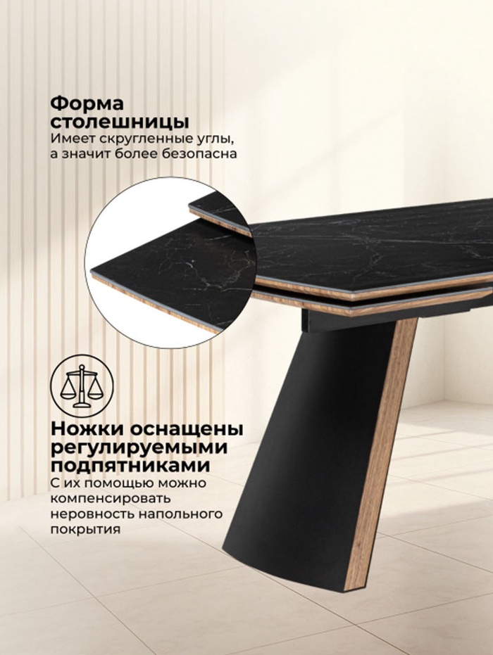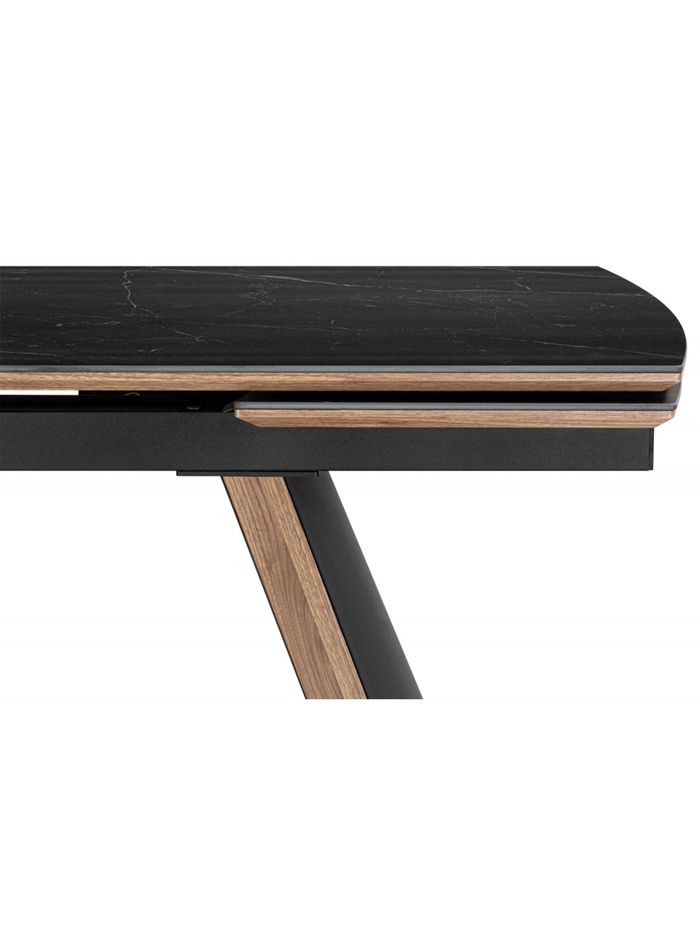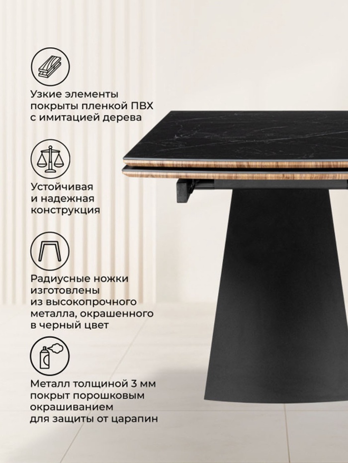 Стол кухонный керамический раздвижной «Симмонс», 1800(2600)×900×760 мм, цвет черный мрамор / черный