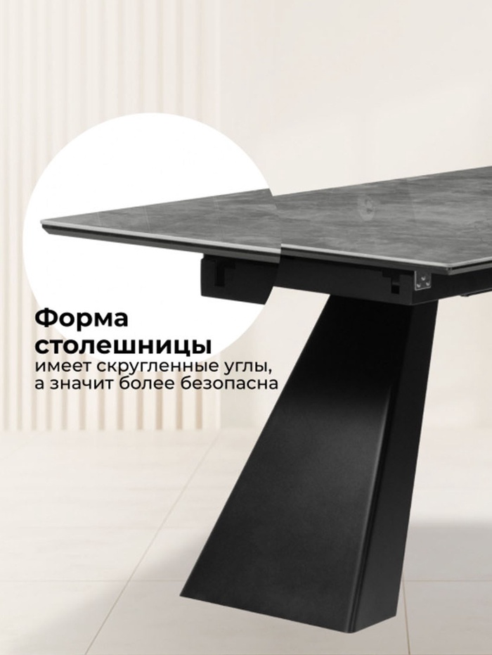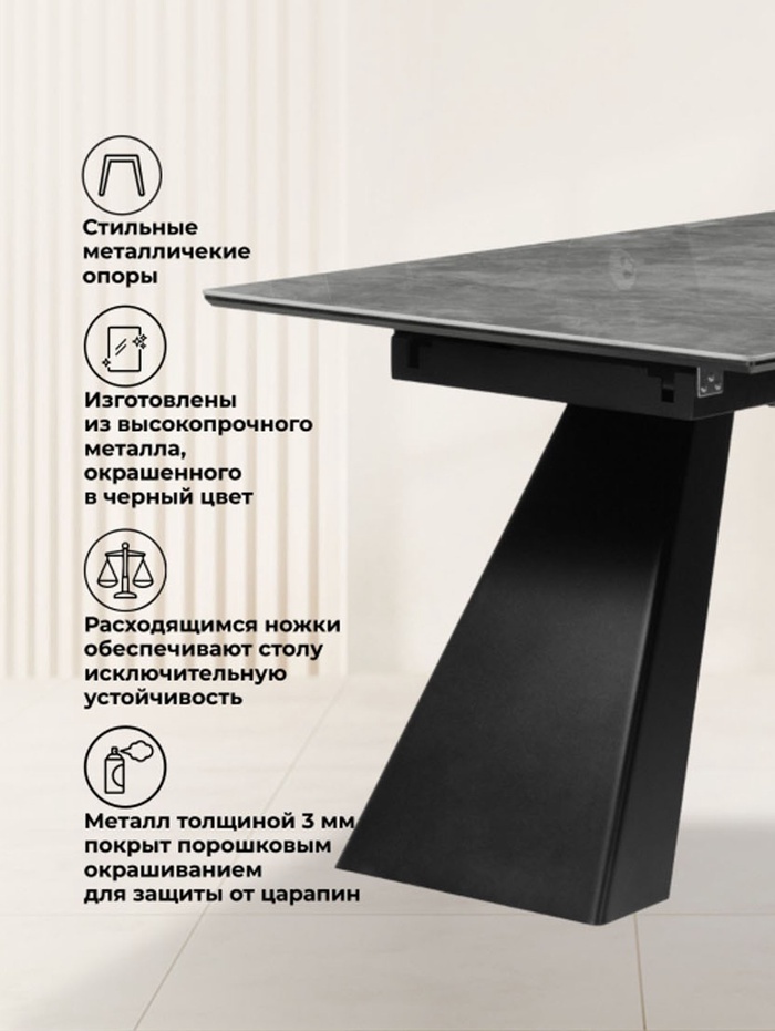 Технические характеристики Стол кухонный керамический раздвижной «Стиг», 1800(2300)×900×770 мм, цвет серый мрамор / черный