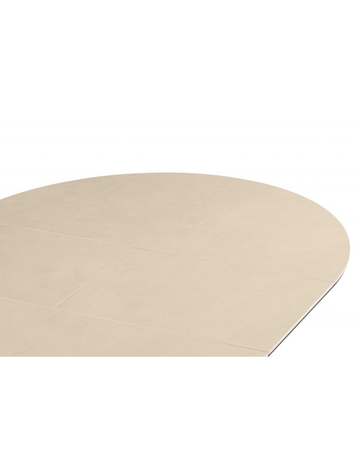 Благодаря раздвижной конструкции стол легко увеличивается в длину, позволяя с комфортом разместить гостей. Керамическая поверхность устойчива к влаге, высоким температурам и механическим повреждениям, что делает стол практичным для ежедневного использования.
