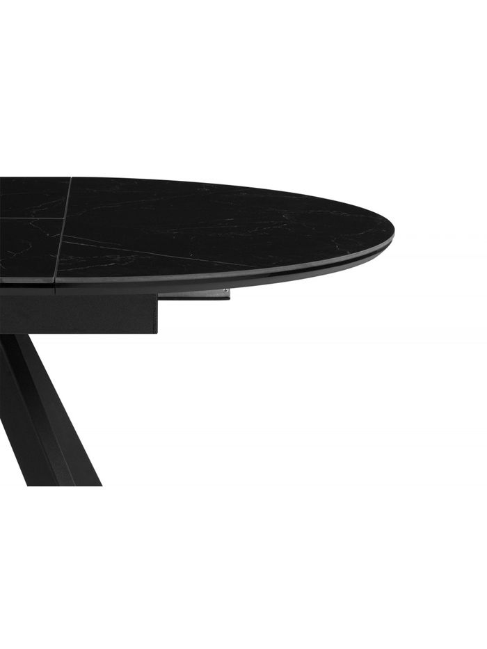 Раздвижная конструкция позволяет увеличить длину стола, обеспечивая дополнительное пространство для комфортного размещения гостей. Керамическая столешница отличается высокой прочностью, устойчива к царапинам, влаге и перепадам температуры, что делает стол практичным для ежедневного использования.