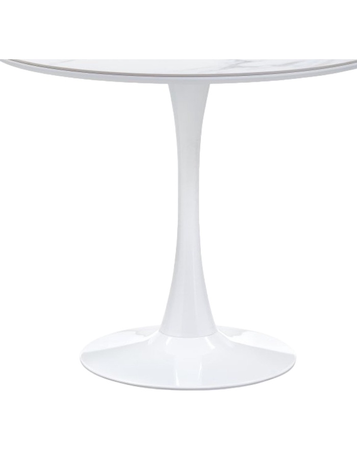Современный керамический стол «Тулип» с белой мраморной столешницей и белым металлическим каркасом станет элегантным дополнением кухни, столовой или гостиной. Компактные размеры позволяют разместить стол даже в небольших помещениях, сохраняя стиль и функциональность.