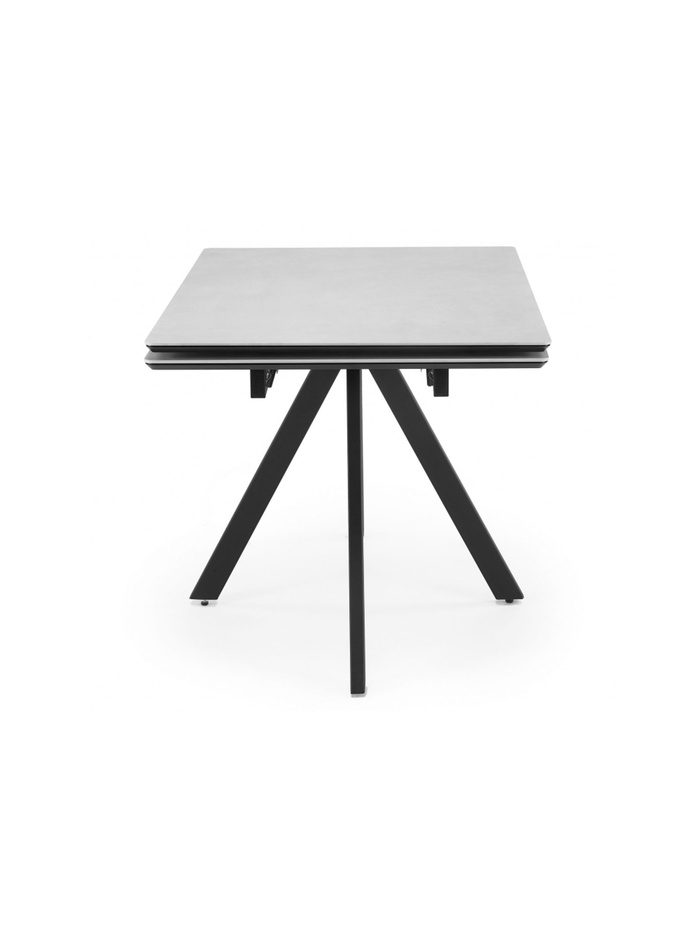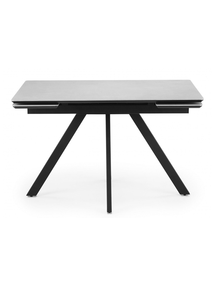 Стол «Вилли» оснащён раздвижным механизмом, позволяющим увеличивать длину столешницы с 120 до 180 см, обеспечивая дополнительное пространство для приёма гостей или комфортной работы. Металлический каркас гарантирует устойчивость конструкции, а керамическая столешница с отделкой carmen light grey устойчива к влаге, царапинам и высокой температуре, что облегчает уход и продлевает срок службы стола. Черные ножки добавляют современный визуальный акцент.