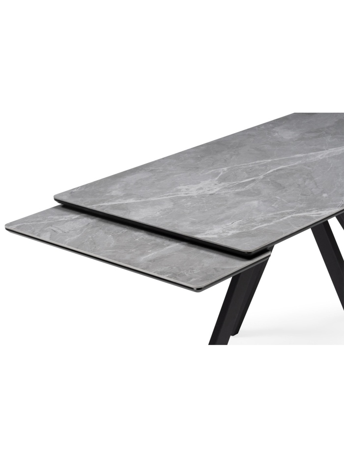 Стол кухонный керамический раздвижной «Вилли», 1400(2000)×800×750 мм, цвет серый мрамор / черный