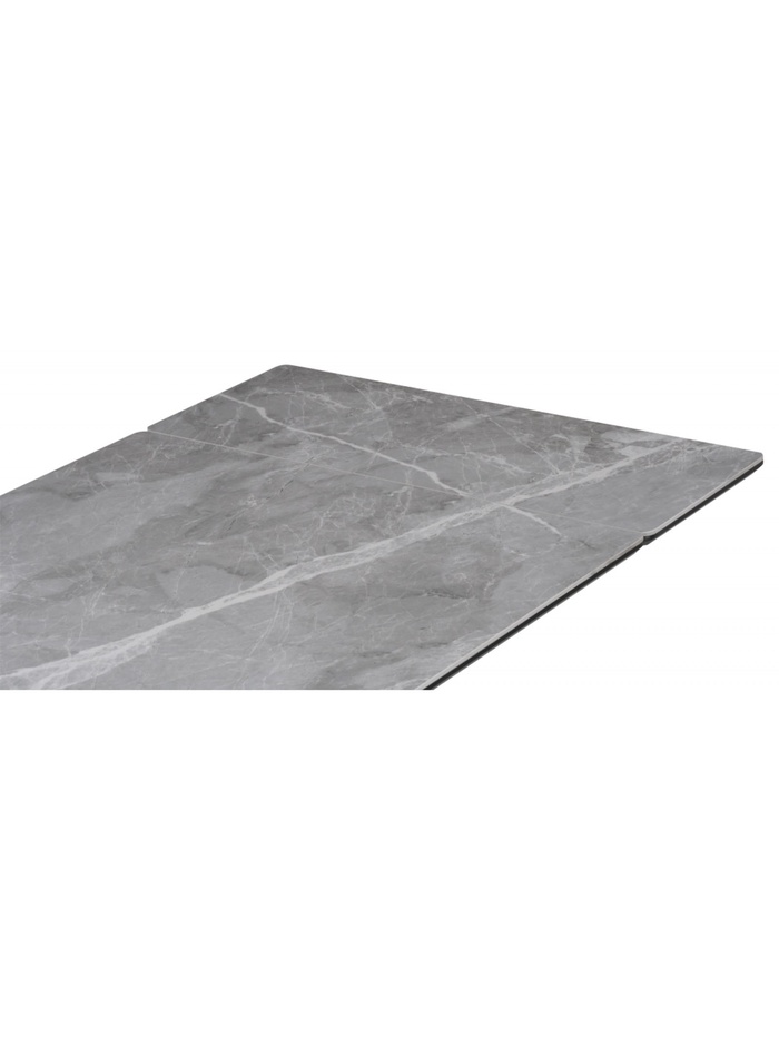 Роскошное и функциональное решение для современной столовой или гостиной. Стол выполнен в изысканном сочетании цветов: столешница из высококачественной керамики с эффектом серого мрамора и строгие чёрные металлические ножки создают элегантный и благородный образ. Керамическая поверхность устойчива к царапинам, высоким температурам и загрязнениям, сохраняя безупречный вид на долгие годы.