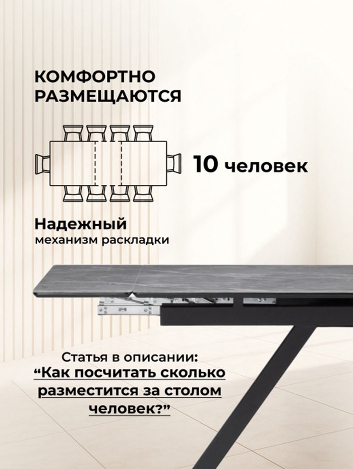 - Гостеприимство: при необходимости стол легко раздвигается, позволяя с комфортом разместить большую компанию за праздничным столом.