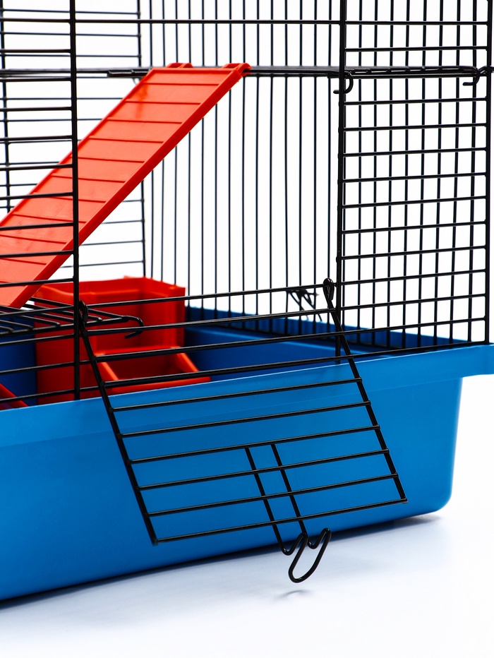 Два этажа — вдвое больше жизни! Двухъярусная клетка для грызунов «Мини» — компактное, но функциональное жильё для хомяков, молодых морских свинок и мелких декоративных грызунов. Синий корпус, встроенная горка и кормушка делают уход проще, а пространство — интереснее для питомца.