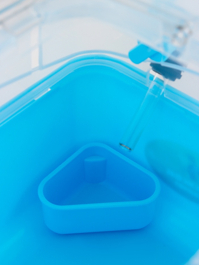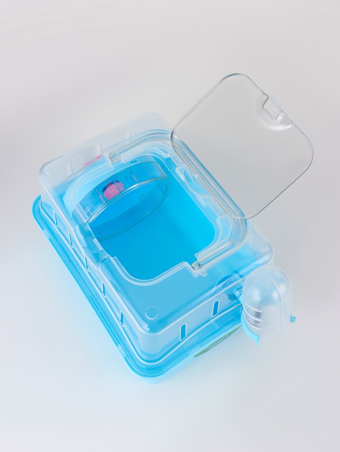 - Безопасный пластик: Материал не впитывает запахи, легко моется и не содержит вредных примесей. Гладкие стенки предотвращают травмы лап и зубов — особенно важно для активных пород вроде сирийских или джунгарских хомяков.