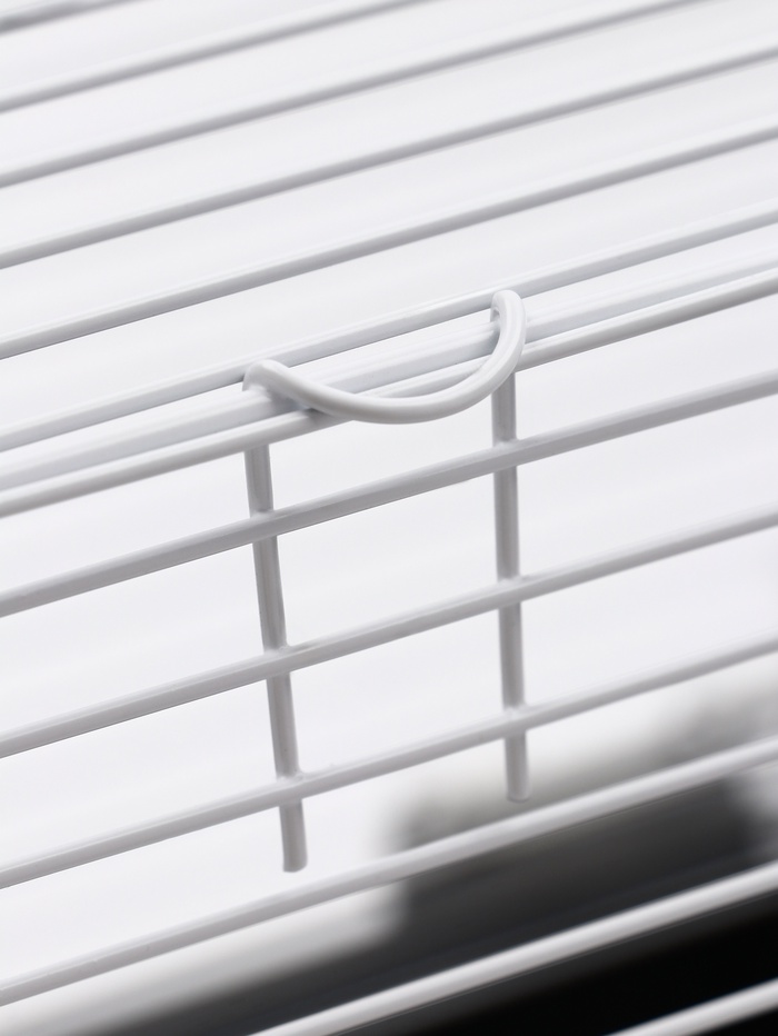 - Надежная защита от побега: Прутья расположены на безопасном расстоянии — 9 мм. Это подходит для хомяков, карликовых крыс и даже молодых шиншилл. Усиленная металлическая рама выдерживает активные прыжки и не деформируется со временем.