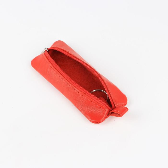 Ключница на молнии, длина 15 см, кольцо, цвет красный