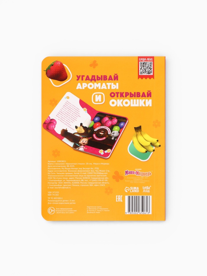 Технические характеристики Книга с окошками «Ароматные стишки», 20 стр., Маша и Медведь