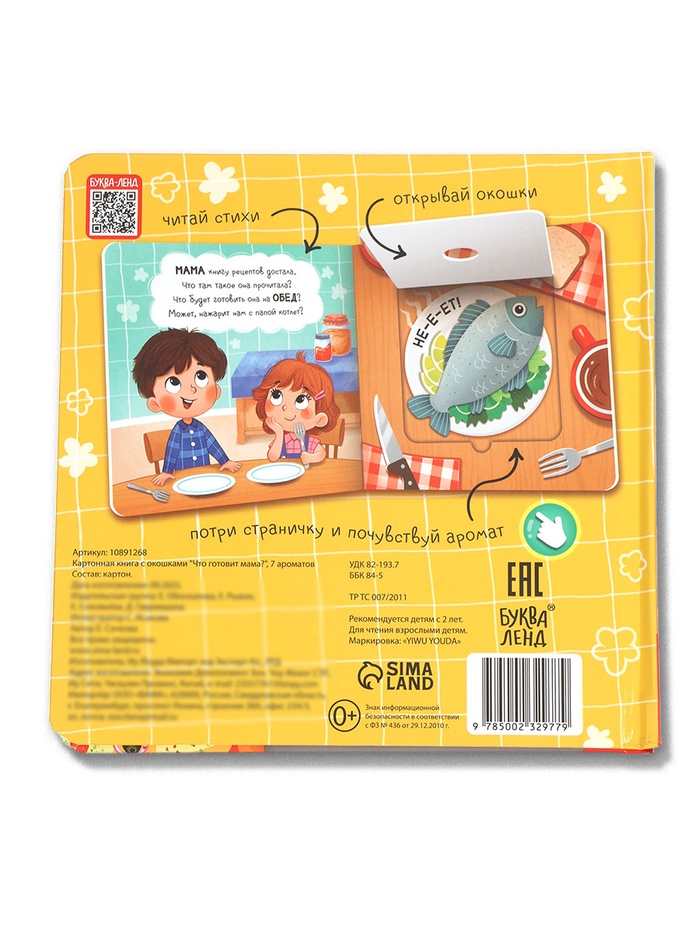 Технические характеристики Книга с окошками «Что готовит мама?», 7 ароматов
