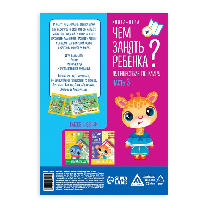 Технические характеристики Книга-игра «Чем занять ребенка? Путешествие по миру. Часть 3», А5, 26 страниц, 5+