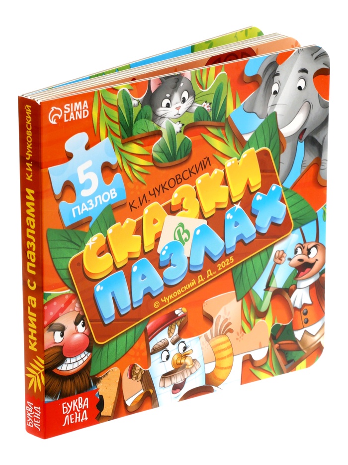 Технические характеристики Книга картонная "Сказки в пазлах", 5 пазлов, 12 стр., Корней Чуковский