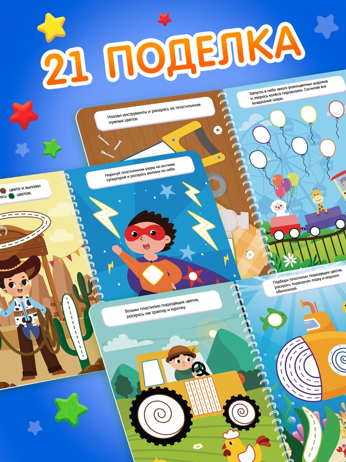 Книга «Многоразовые аппликации пластилином для мальчиков», 21 поделка