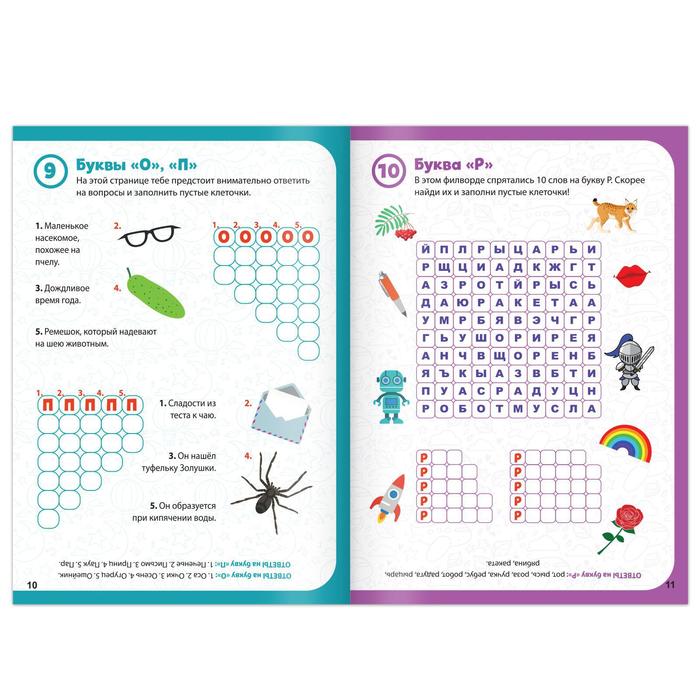 Книга содержит увлекательные кроссворды на каждую букву алфавита, а также ребусы и филворды. Книга поможет натренировать умение правильно отвечать на вопросы и определять изображения на картинках.